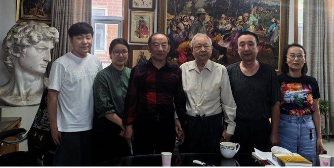 2023年底,我出差去法国,借登机前的空挡时间去看望张老师,见他正在为自己的墓地设计雕塑方案。张老师不仅是油画家,还是雕塑家,早年曾跟随刘开渠参与中国人民英雄纪念碑设计,石家庄烈士陵园的《冲锋的战士》、北戴河公园的《鲁迅像》,都出自张老师之手。不久前张老师创作的马克西莫夫雕像,又赠给了中央美术学院和俄罗斯苏里科夫美术学院。聊天时,我知道张老师买墓地资金尚无着落时,便再次解囊相助,并由衷希望他把墓地的雕塑设计得更好,以为社会留下最后一件艺术精品。 2024年8月5日,为商讨张老师美术作品集第10卷编辑问题,我与原河北美术出版社编辑室主任张星、雅昌工作人员李如燕,去找张老师。尽管他听力越来越差,但仍思路清晰,谈吐自如,乐观豁达,特别是得知付出多年心血的美术作品集即将面世时,更是激动不已。