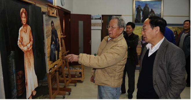 打这以后,我每逢进京开会或公务之余,都会去看望张老师,要么看他画画,要么促膝聊天,要么低抿小酌。几年后,在张老师的鼓励下,我重操画笔,开始西藏题材的油画创作。 理想与现实往往存在很大差距,22年没动画笔,重新开始画画时,手十分生疏,颜色难免匠气。当我打电话向张老师请教时,他诚恳告诉我只要铆足劲,连续画上一年半载,就会有所突破。老师的鼓励成了动力,我不灰心,不气馁,在继续带领2万多名员工艰苦创业的同时,玩命画了两年,竟然完成20多幅作品。2009年和2010年,张老师先后几次来邯郸对我进行现场示范指导,让我获益匪浅。张老师翻看我多次进藏拍的十几本大摄影相册时,更是十分喜悦,以自己的切身实践,向我讲述生活是创作的源泉,从平凡中发现伟大,通过细节中揭示人性光辉,才是艺术真谛的道理。