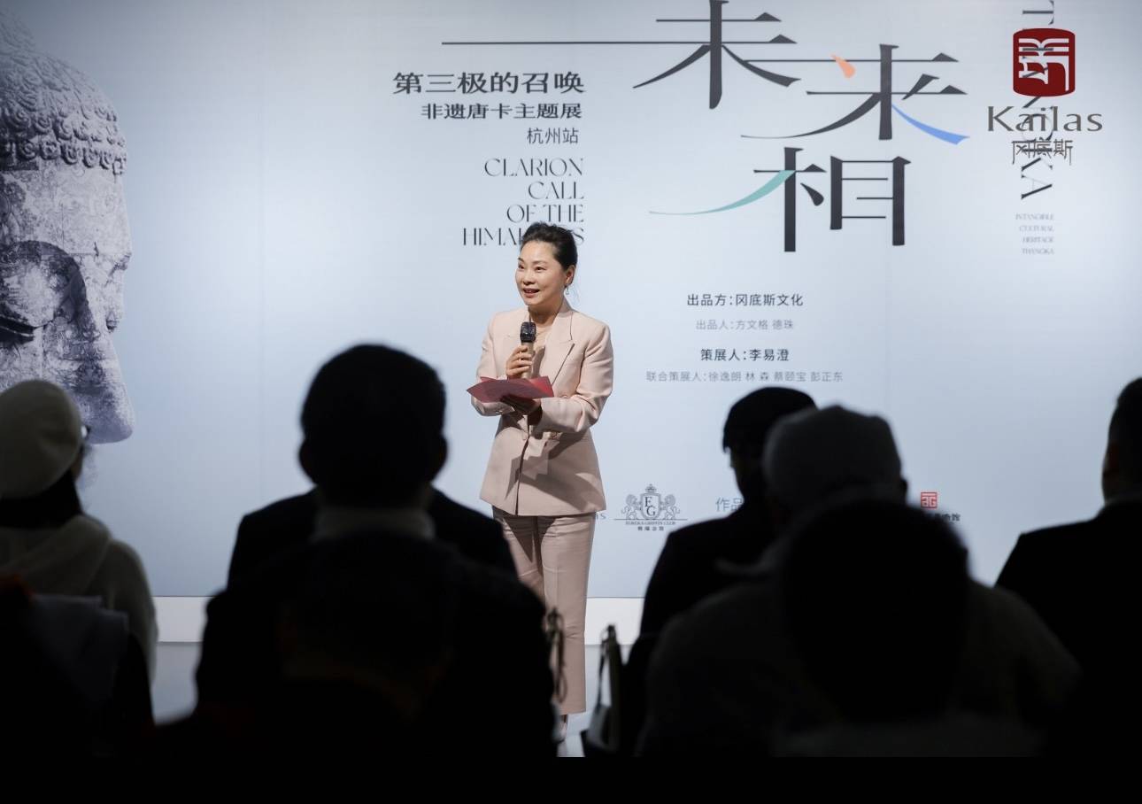 冈底斯文化机构高级顾问及创始人卓文质先生在开幕式中表示:唐卡艺术是中国传统艺术文化脉络中传承最完整的艺术之一。是西藏名族的历史史书、科学、医药以及文化的传承载体。是世界独一的,也是中华名族优秀的文化瑰宝。第三极的召唤全球巡展第三站的举办地点,杭州,这座;历史悠久、人文荟萃的城市,与藏传佛教有着深厚的历史渊源。飞来峰石刻、精美的造像,经历百年风雨依旧诉说着汉藏文化交融的盛况这份深厚的历史积淀,为本次展览在杭州的传播奠定了坚实的文化基础。卓先生同时表示:希望通过本次展览,能够让更多杭州观众朋友近距离领略唐卡艺术的精湛技艺与深邃内涵,感受独特的审美价值与精神力量。