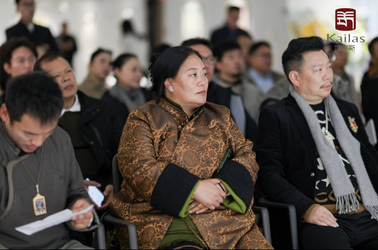 嘉宾合影 本次展览由冈底斯文化出品,著名策展人李易澄策划,旨在将雪域高原的信仰艺术与江南水乡的温润禅韵完美融合。展览核心展品是一幅历经108天僧众诵经加持的珍贵唐卡,它以朱砂、绿松石、珍珠等天然材质研磨上色,承载着藏地千年的文化传承。