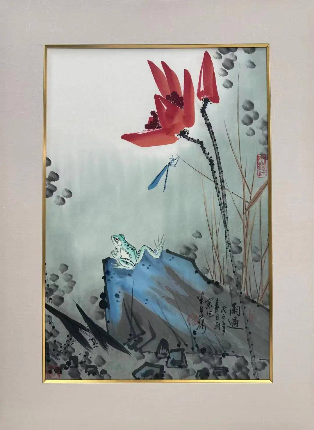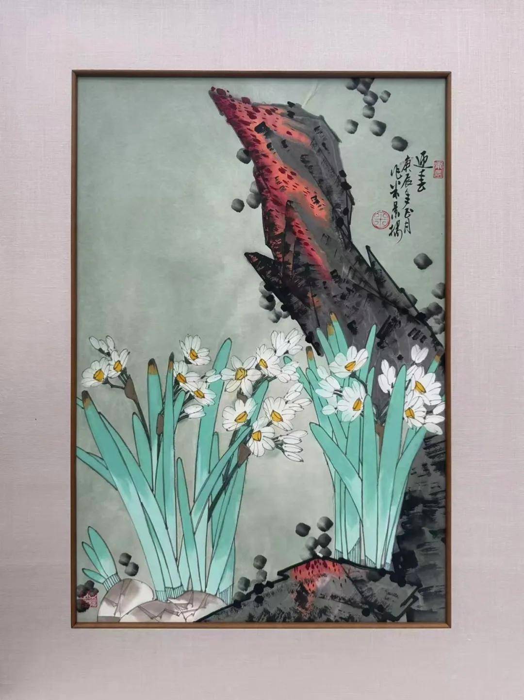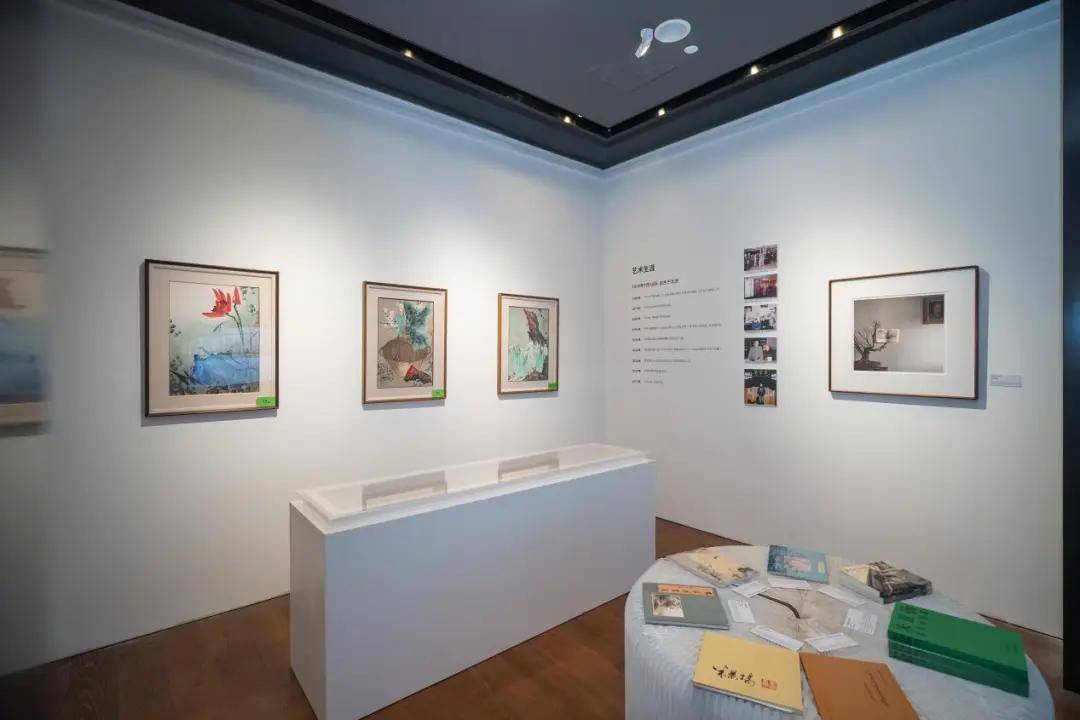 四大展区深度解析 解锁米景扬的艺术密码 本次特展以“立体档案”为核心,通过四大展区的精心布置,全方位呈现米景扬的艺术人生与创作脉络。每一个展区都藏着专属的艺术细节,等待观众亲手“解压”。 【作品区:近距离触摸笔墨的温度】 作为特展的核心区域,作品区精选了米景扬《雨过》《彩陶》《红石水仙》3幅不同时期的原作。现场近距离观赏,从《雨过》中雨后花鸟的清新灵动,到《彩陶》里传统器物与花卉的巧妙融合,再到《红石水仙》的清雅高洁,不仅能清晰感受到他扎实的线条功力——每一笔勾勒都精准有力,花鸟的羽毛、花瓣的纹理纤毫毕现;更能体会其细腻的墨彩控制,墨色的浓淡过渡、色彩的清雅搭配。站在作品前,仿佛能与艺术家隔空对话,感受笔墨间流淌的温度与生命力。