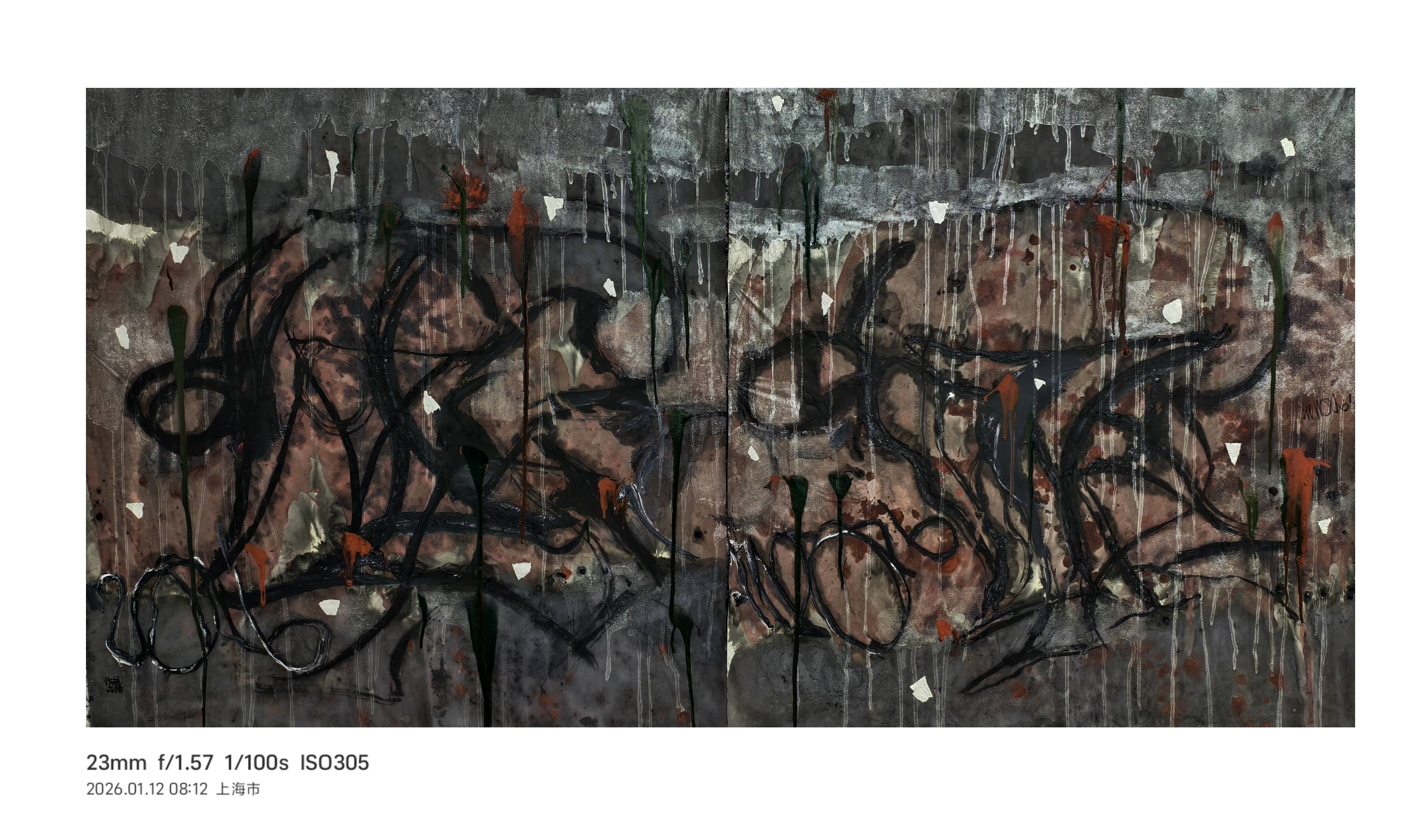 《未央系列》 2026 96x176cm 水墨 丙烯 草木灰 可以说,徐善循的创作并不在意回答“水墨如何当代”,而是在反问:当代人是否还具备与自然、与万物、与时间有真正对话的能力。在这一意义上,他的绘画不是宣言,而是一种持续的修行——在纸与水之间,在可见与不可见之间,缓慢而坚定地前行。 陆蓉之 Victoria Lu |